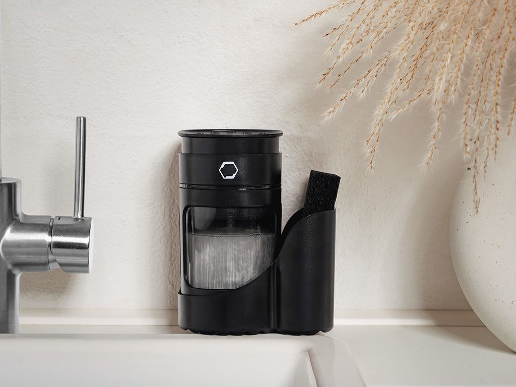 With the ONYX COOKWARE™ DISH SOAP DISPENSER, you'll experience a new level of efficiency and cleanliness in your kitchen. Whether you're washing a single dish or tackling a full sink, this dispenser provides the perfect amount of soap every time, reducing waste and making your cleaning routine more sustainable. Upgrade your kitchen experience with the ONYX COOKWARE™ DISH SOAP DISPENSER and discover the convenience of effortless dishwashing.