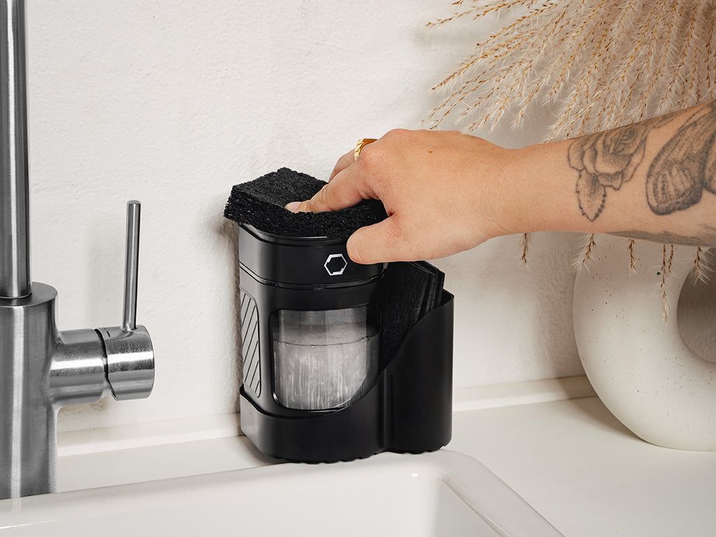 • Dispenses Soap Directly Onto Sponge